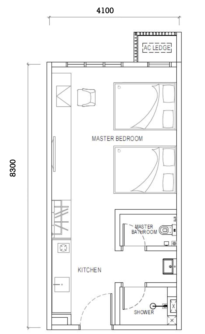 366 SF (34 SM) . Studio . 1 Room & 1 Bathroom