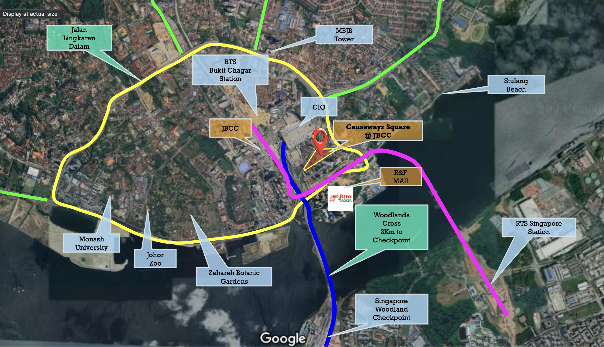 Causewayz Square @ JBCC, an iconic mixed development strategically located in the heart of Johor Bahru City Centre (JBCC). Seamlessly connected to CIQ, RTS, JB Sentral, Komtar JBCC, and City Square, this vibrant address offers the ultimate urban convenience — where business, lifestyle, and connectivity meet. It is a perfect prime location for Singapore commuters, home buyers and short stay investors.